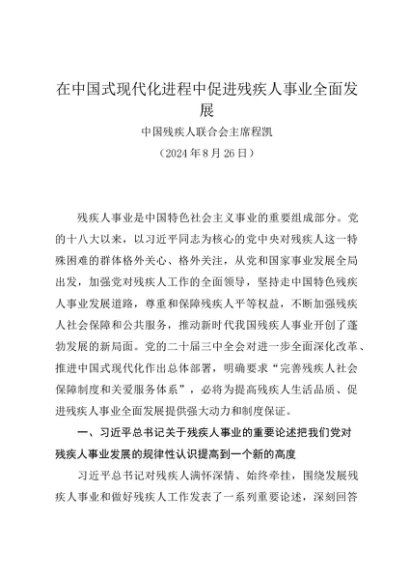 / 署名文章:20240826(学习贯彻三中全会精神)在中国式现代化进程中促进残疾人事业全面发展——中国残疾人联合会主席程凯