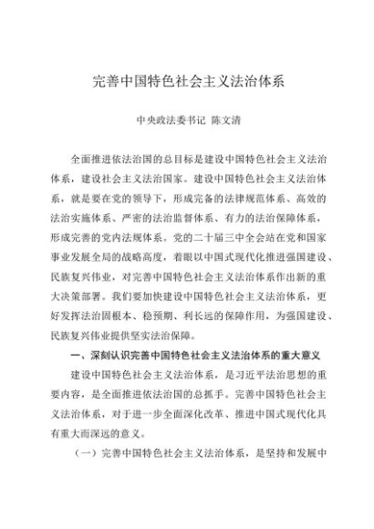 / 署名文章:20240831(学习贯彻三中全会精神)完善中国特色社会主义法治体系——中央政法委书记 陈文清