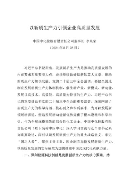 署名文章:20240828(学习贯彻三中全会精神)以新质生产力引领企业高质量发展——中国中化控股有限责任公司董事长 李凡荣