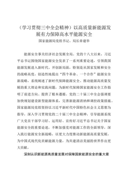 署名文章:20240814(学习贯彻三中全会精神)以高质量新能源发展有力保障高水平能源安全——国家能源局党组书记、局长章建华