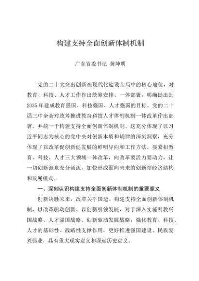 署名文章:20240807(学习贯彻三中全会精神)构建支持全面创新体制机制——广东省委书记 黄坤明