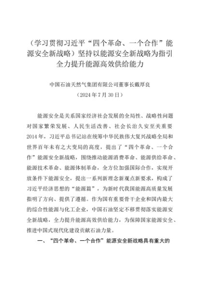 署名文章:20240730(学习贯彻习近平“四个革命、一个合作”能源安全新战略)坚持以能源安全新战略为指引 全力提升能源高效供给能力——中国石油天然气集团有限公司董事长戴厚良