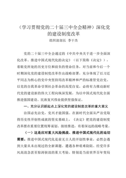 署名文章:20240812(学习贯彻三中全会精神)深化党的建设制度改革——中组部部长 李干杰