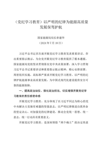 / 署名文章:20240718(党纪学习教育)以严明的纪律为能源高质量发展保驾护航——国家能源局局长章建华