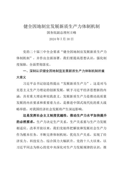 / 署名文章:20240730(学习贯彻三中全会精神)健全因地制宜发展新质生产力体制机制——国务院副总理何立峰