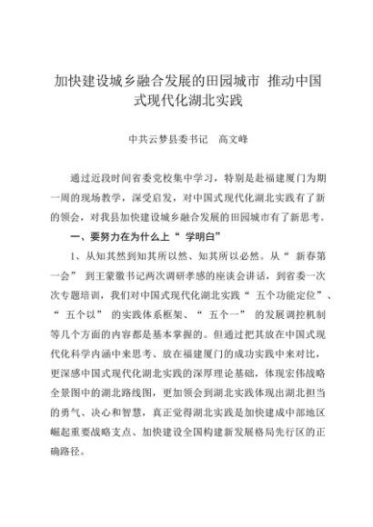 署名文章:20240706加快建设城乡融合发展的田园城市 推动中国式现代化湖北实践——中共云梦县委书记 高文峰