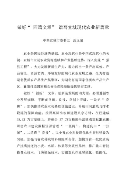 署名文章:20240625做好“ 四篇文章” 谱写宜城现代农业新篇章——宜城市委书记 武义泉