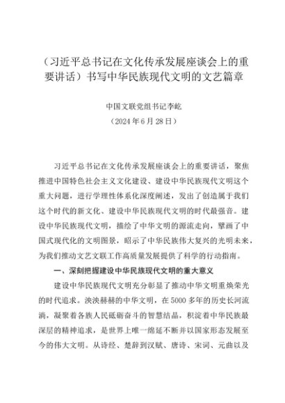 署名文章:20240628(习近平总书记在文化传承发展座谈会上的重要讲话)书写中华民族现代文明的文艺篇章——中国文联党组书记李屹