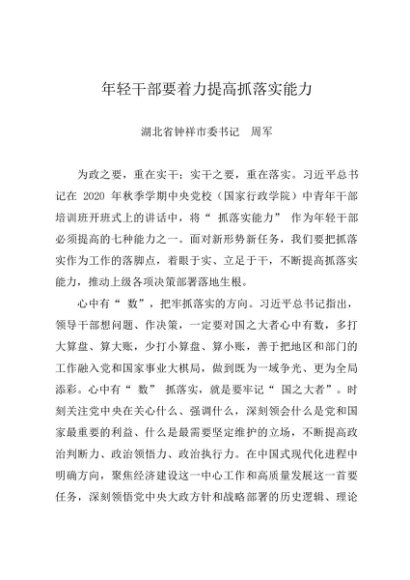 署名文章:20240624年轻干部要着力提高抓落实能力——湖北省钟祥市委书记 周军