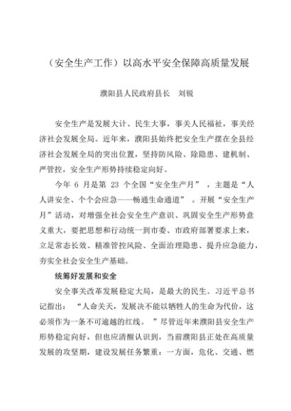 / 署名文章:20240619(安全生产月)以高水平安全保障高质量发展——濮阳县人民政府县长 刘锐