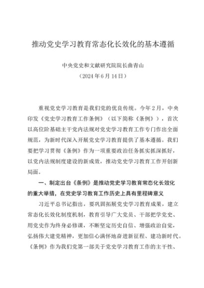 / 署名文章:20240614推动党史学习教育常态化长效化的基本遵循——中央党史和文献研究院院长曲青山