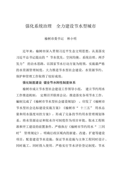 / 署名文章:20240613(节水工作)强化系统治理 全力建设节水型城市——榆树市委书记 林小明