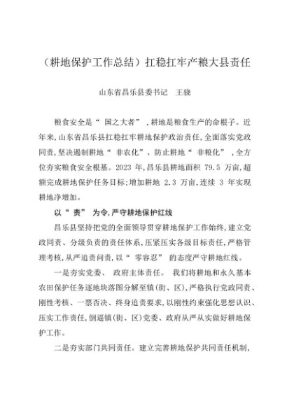署名文章:20240607(耕地保护工作总结)扛稳扛牢产粮大县责任——山东省昌乐县委书记 王骁