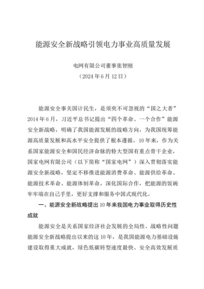 署名文章:20240612能源安全新战略引领电力事业高质量发展——电网有限公司董事张智刚