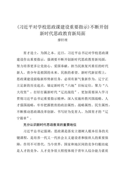 / 署名文章:20240607(习近平对学校思政课建设重要指示)不断开创新时代思政教育新局面——廖轩理