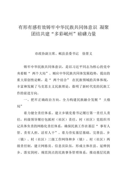 署名文章:20240603(民族工作)有形有感有效铸牢中华民族共同体意识 凝聚团结共建“多彩岷州”磅礴力量——岷县县委书记