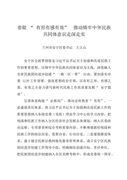 署名文章:20240603(民族工作)着眼 “ 有形有感有效” 推动铸牢中华民族共同体意识走深走实——兰州市安宁区委书记