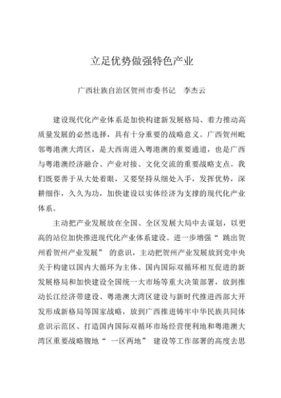 署名文章:20240604立足优势做强特色产业——广西壮族自治区贺州市委书记 李杰云