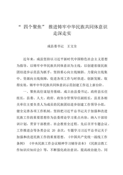 / 署名文章:20240529“ 四个聚焦” 推进铸牢中华民族共同体意识走深走实——成县委书记