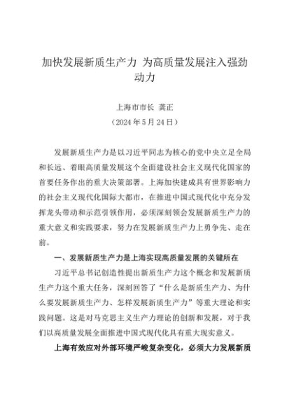 署名文章:20240524加快发展新质生产力 为高质量发展注入强劲动力——上海市市长 龚正
