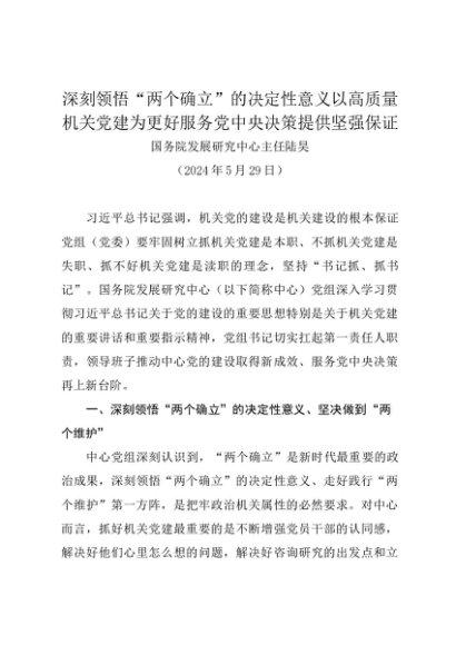 署名文章:20240529深刻领悟“两个确立”的决定性意义以高质量机关党建为更好服务党中央决策提供坚强保证——国务院发展研究中心主任陆昊