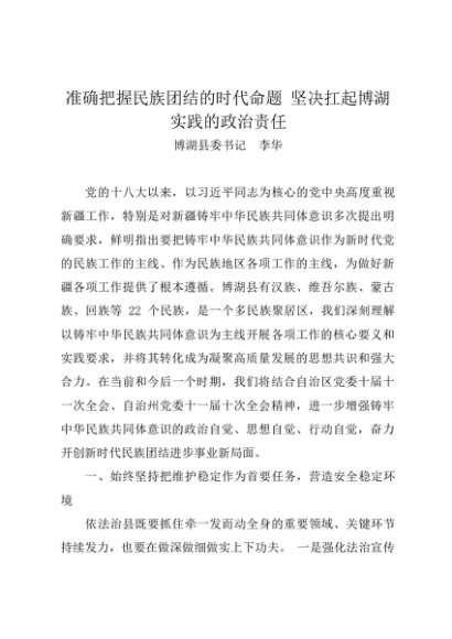 署名文章:20240520准确把握民族团结的时代命题 坚决扛起博湖实践的政治责任——博湖县委书记