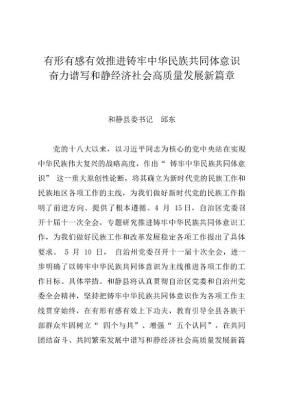 署名文章:20240521有形有感有效推进铸牢中华民族共同体意识 奋力谱写和静经济社会高质量发展新篇章——和静县委书记
