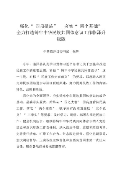 署名文章:20240522强化“ 四项措施” 夯实“ 四个基础” 全力打造铸牢中华民族共同体意识工作临泽升级版——临泽县委书记