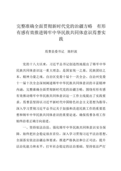 署名文章:20240522完整准确全面贯彻新时代党的治疆方略 有形有感有效推进铸牢中华民族共同体意识焉耆实践——焉耆县委书记