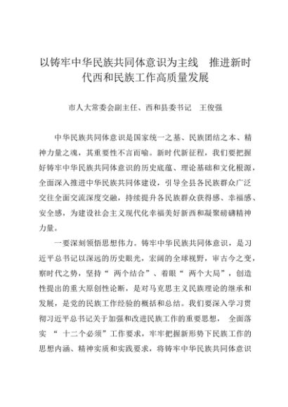 署名文章:20240522以铸牢中华民族共同体意识为主线 推进新时代西和民族工作高质量发展——西和县委书记