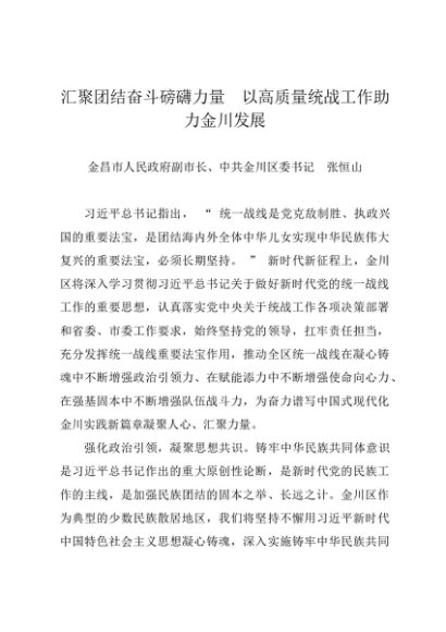 署名文章:20240522汇聚团结奋斗磅礴力量 以高质量统战工作助力金川发展——金川区委书记