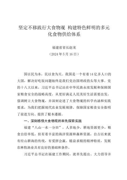 / 署名文章:20240516坚定不移践行大食物观 构建特色鲜明的多元化食物供给体系——福建省省长赵龙
