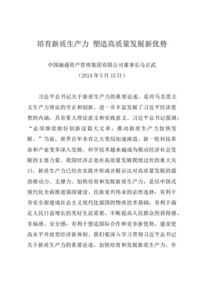 署名文章:20240515培育新质生产力 塑造高质量发展新优势——中国融通资产管理集团有限公司董事长马正武