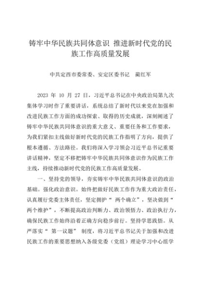 署名文章:20240513铸牢中华民族共同体意识 推进新时代党的民族工作高质量发展——安定区委书记