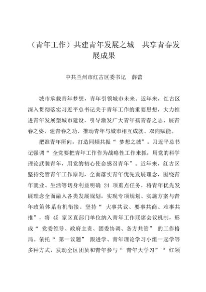 / 署名文章:20240513(青年工作)共建青年发展之城 共享青春发展成果——兰州市红古区委书记