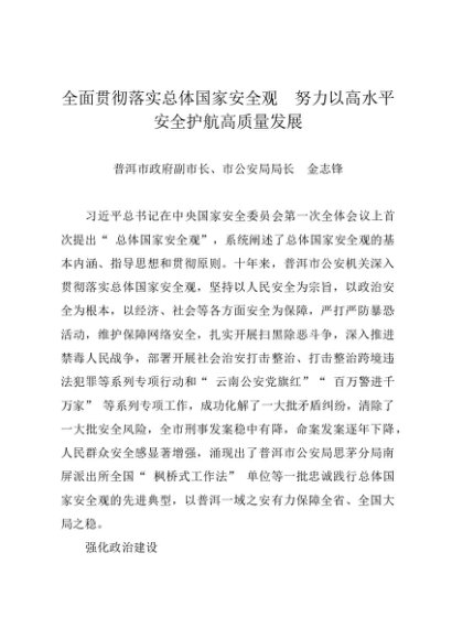 署名文章:20240507全面贯彻落实总体国家安全观 努力以高水平安全护航高质量发展——普洱市公安局局长