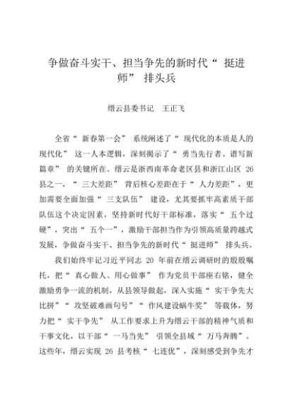 署名文章:20240508争做奋斗实干、担当争先的新时代“ 挺进师” 排头兵——缙云县委书记