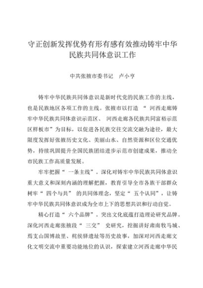 / 署名文章:20240508守正创新发挥优势有形有感有效推动铸牢中华民族共同体意识工作——张掖市委书记