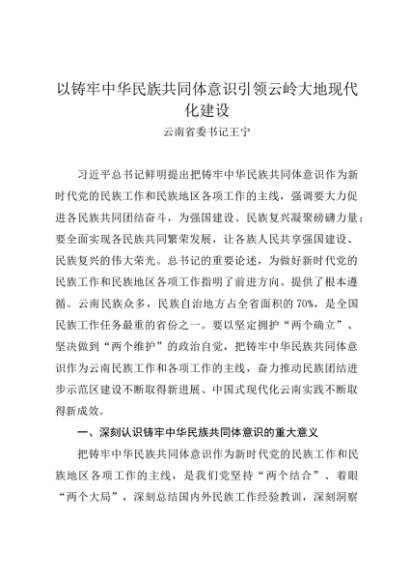署名文章:20240429以铸牢中华民族共同体意识引领云岭大地现代化建设——云南省委书记王宁