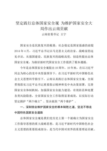 / 署名文章:20240429(总体国家安全观)坚定践行总体国家安全观 为维护国家安全大局作出云南贡献——云南省委书记 王宁