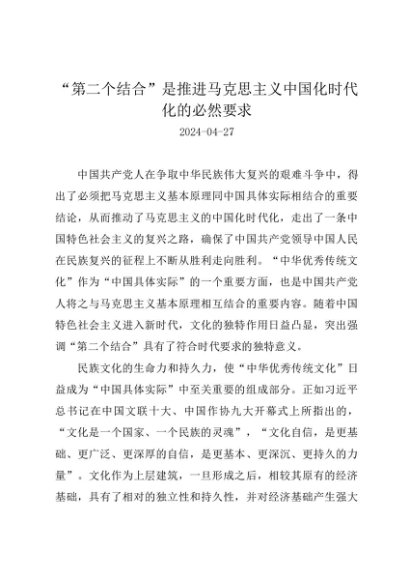 / 署名文章:20240427“第二个结合”是推进马克思主义中国化时代化的必然要求