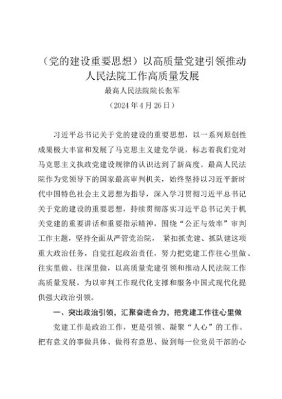 / 署名文章:20240426(党的建设重要思想)以高质量党建引领推动人民法院工作高质量发展——最高人民法院院长张军