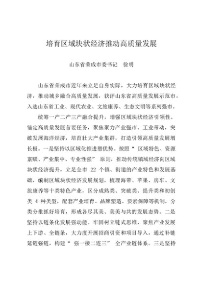 / 署名文章:20240425培育区域块状经济推动高质量发展——山东省荣成市委书记 徐明