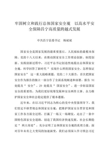 署名文章:20240422牢固树立和践行总体国家安全观 以高水平安全保障昌宁高质量跨越式发展——中共昌宁县委书记 杨斌斌