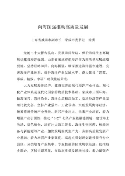 署名文章:20240417向海图强推动高质量发展——山东省威海市副市长 荣成市委书记 徐明
