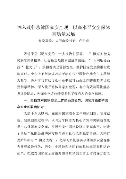 / 署名文章:20240416深入践行总体国家安全观 以高水平安全保障高质量发展——大同市委书记 卢东亮