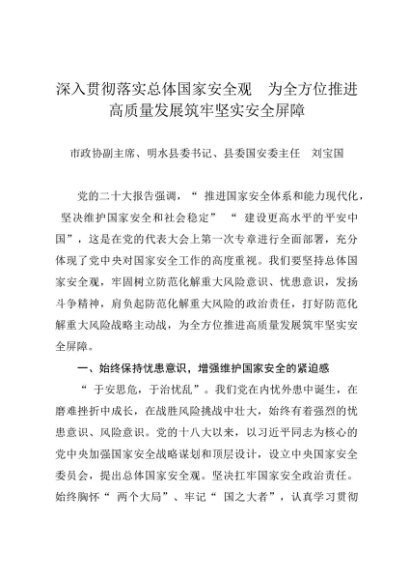 署名文章:20240415深入贯彻落实总体国家安全观 为全方位推进高质量发展筑牢坚实安全屏障——明水县委书记 刘宝国