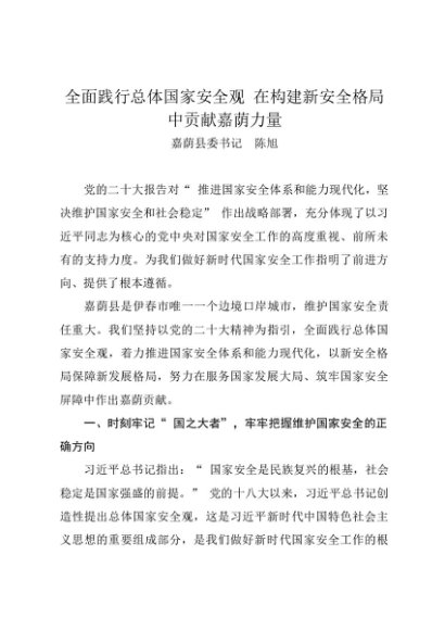 / 署名文章:20240415全面践行总体国家安全观 在构建新安全格局中贡献嘉荫力量——嘉荫县委书记 陈旭