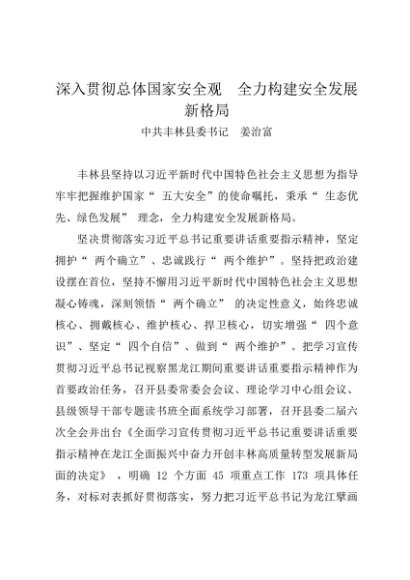 署名文章:20240415深入贯彻总体国家安全观 全力构建安全发展新格局——中共丰林县委书记 姜治富