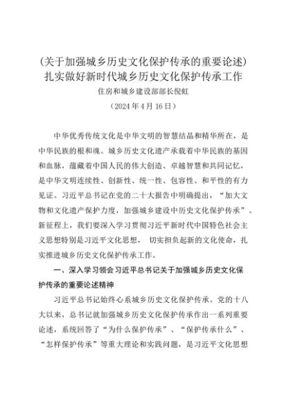署名文章:20240416(关于加强城乡历史文化保护传承的重要论述)扎实做好新时代城乡历史文化保护传承工作——住房和城乡建设部部长倪虹